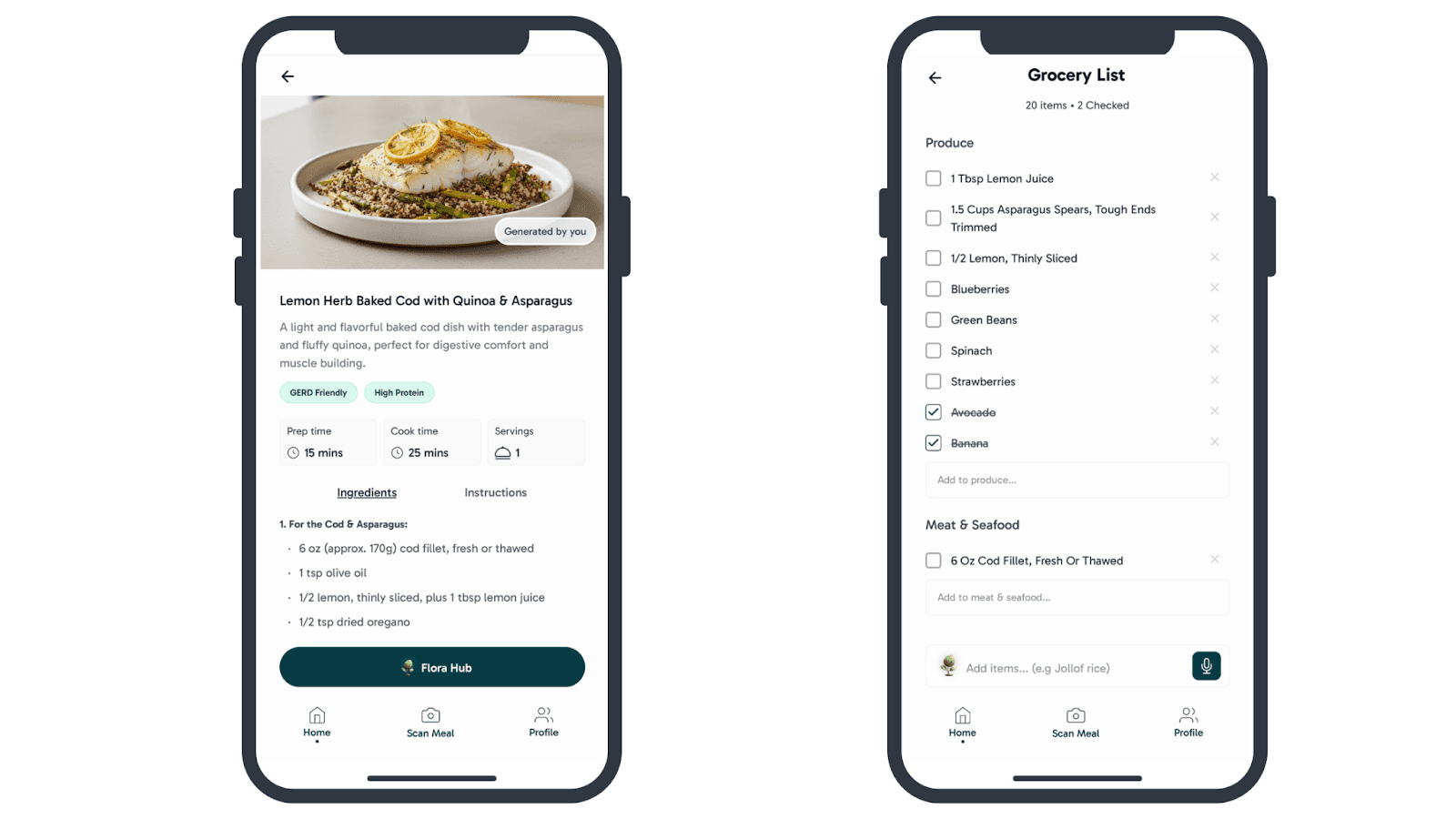 Try Flourish: Create a recipe, build a grocery list, and check back next week for 1–7 day meal plans (in-app).